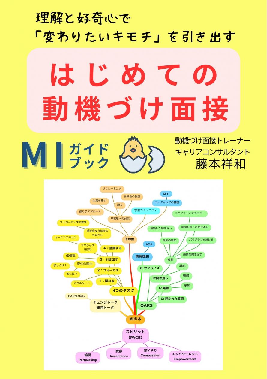 ・対人援助に役立つ世界標準のコミュニケーション技法である「動機づけ面接」(Motivational Interviewing/ MI)を、親しみやすい入門書『はじめての動機づけ面接 MIガイドブック』(藤本祥和著・風と太陽)をテキストとして学びます。著者がトレーナーを務めます。